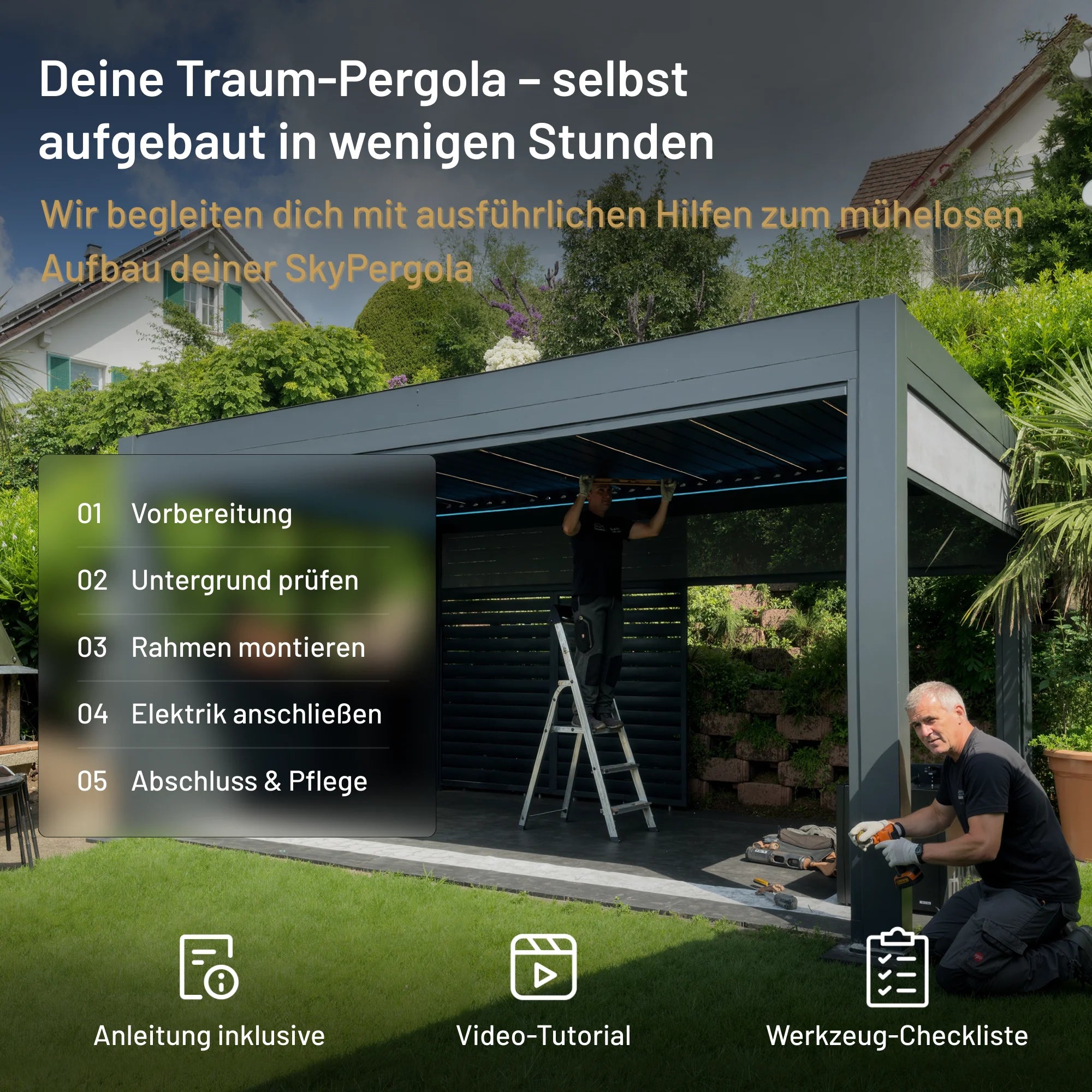 Wer maximale Sicherheit und Komfort möchte, entscheidet sich für unsere professionelle Montage durch SkyPergola.