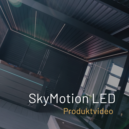 Unsere Sky Pergola Modelle sind je nach Modell für Schneelasten zwischen 50 kg/m² und 150 kg/m² konzipiert. In alpinen Regionen oder bei starkem Schneefall empfehlen wir, die Lamellen geöffnet zu lassen, damit der Schnee ungehindert durchfallen kann und keine übermässige Last auf dem Dach entsteht.